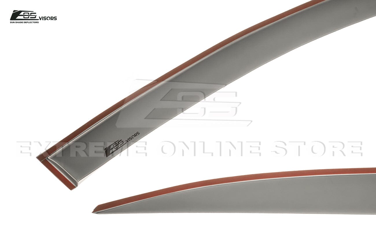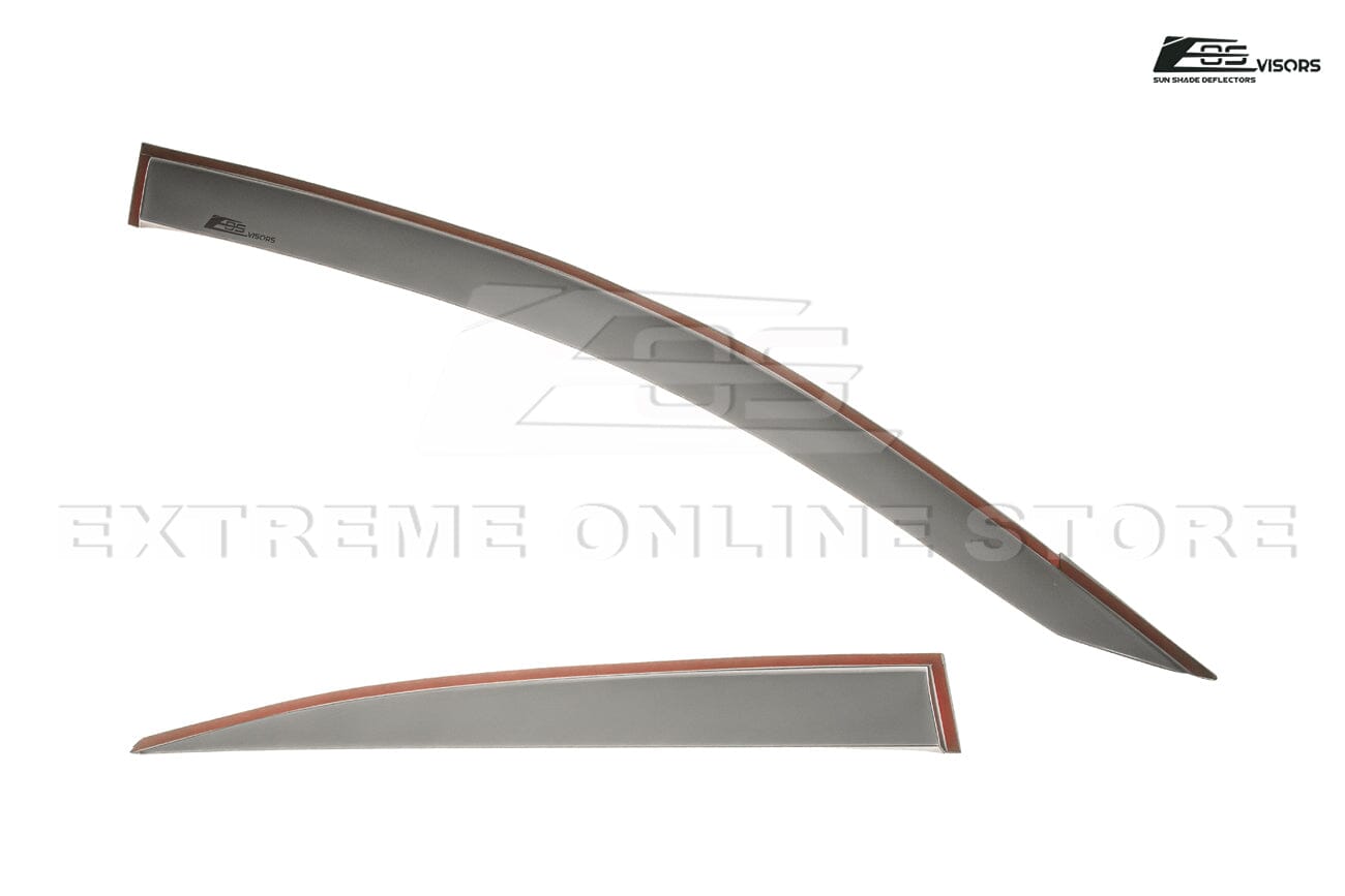 EOS Tape-On window visors are made of high-quality acrylic plastic which can reduce wind noise effectively. The smoke-tinted surface finish provides shade from bright sun glare and reduces your vehicle's internal temperature as well. Installation is easy and quick. By following our installation guide, you will able to attach the visors with the automotive-grade tape in just a few minutes. EOS Visors will take your car and your driving experience to the next new level.